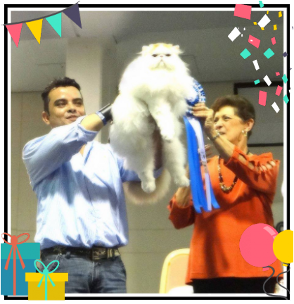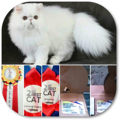 2ND BEST OF THE BEST CAT. TICA APRIL 25, 26 & 27 -2014 ( EARNED SUPREME GRAND CHAMPION TITLE EN JUST ONE SHOW) 2014 SECOND BEST BLACK/WHITE PERSIAN OF THE YEAR 2014 BEST BLACK/WHITE PERSIAN OF THE YEAR- SOUTH AMERICA REGION. 10TH BEST LONG HAIR CAT OF SOUTH AMERICA REGION. GRAND AT ONE SHOW
